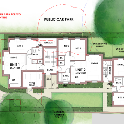 Providing planning support for Architecture plb, an award winning architectural practice, the proposals included a retail unit on the ground floor with 9 x studio flats, 9 x 1 bedroom and 11 x 2 bedroom flats above, all with their own balcony. With a dual aspect retail unit provided on the ground floor, an active frontage was retained and a mix of uses preserved.